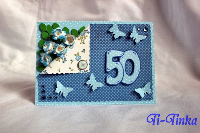 Dzisiaj mam Wam do pokazania dość spokojną kartkę na 50 urodziny.