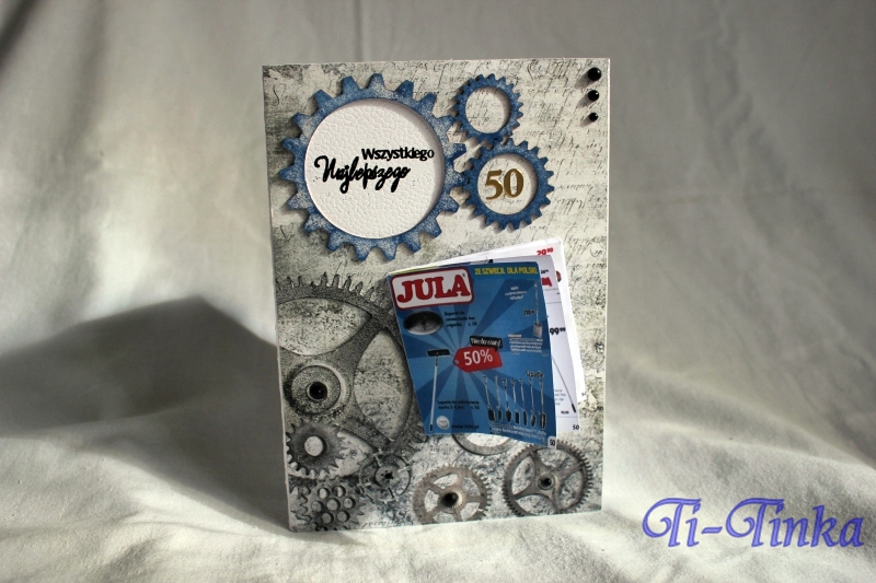 1. Super kartka ! Bardzo osobista, jedyna w swoim rodzaju i zrobiona pod Jubilata! Takie są najlepsze :):) Koła zebate slicznie się prezentują 🙂