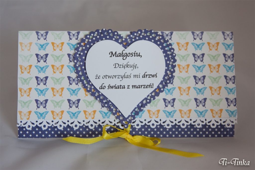 Mimo, że na pierwszy rzut oka wyglądają jak kopertówki, to są po prostu otwierane na 3, a w środku mają dużo miejsca na osobiste podziękowania.