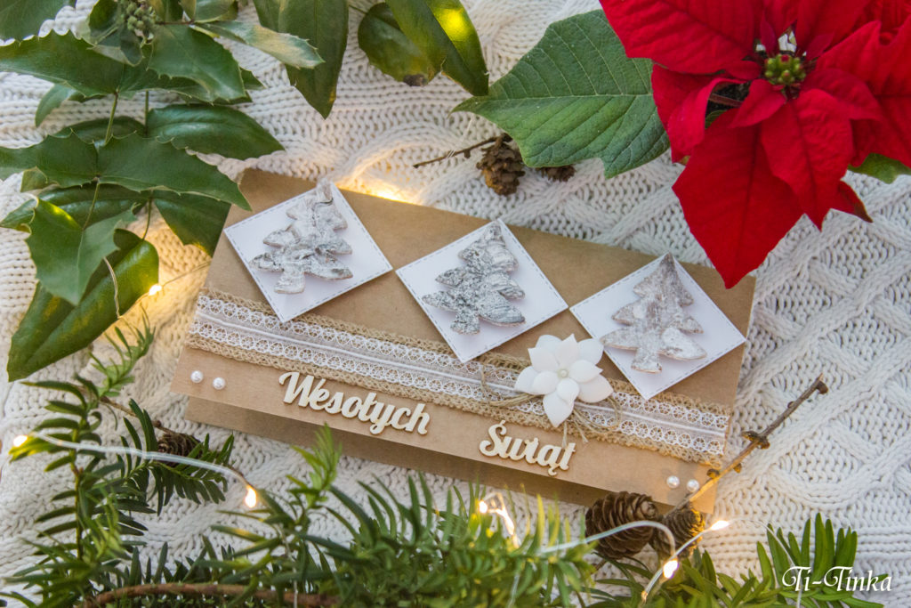 bardzo lubię też, kartki rustykalne. W zeszłym roku dostałam takie cudne choinki z kory brzozowej, trochę się naczekały, ale znalazłam dla nich idealną oprawę 🙂