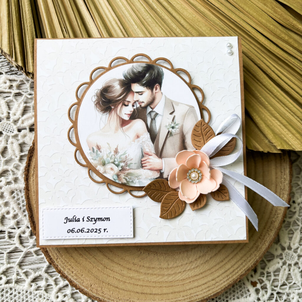Dzisiaj przed Wami kartka ślubna w kremowej kolorystyce.