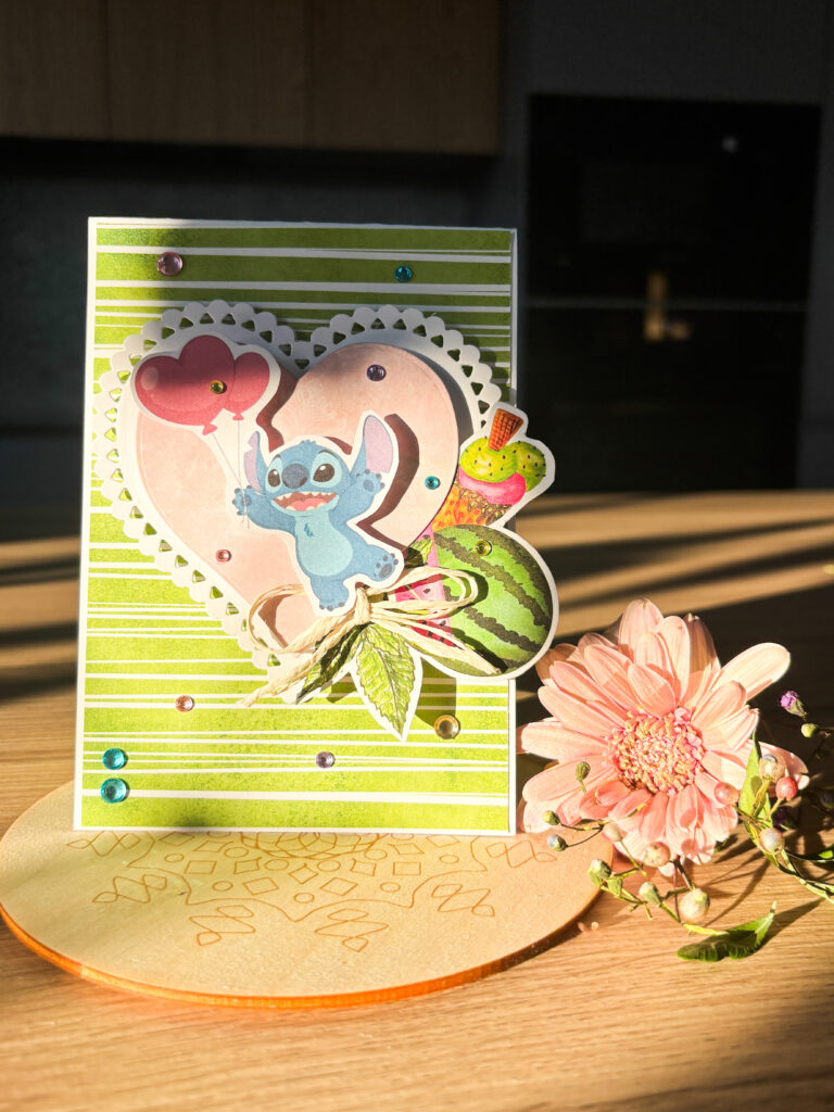Zrobiłam ją w formie pop-up twist, a to oznacza, że przy otwieraniu wyskakują małe Stiche.