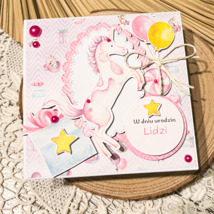 Kartka na urodziny dla dziewczynki – bardzo proszę – postawiłam tu na motyw jednorożca. Jak Wam się podoba?