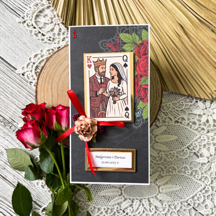 Kartka ślubna w karcianym stylu
